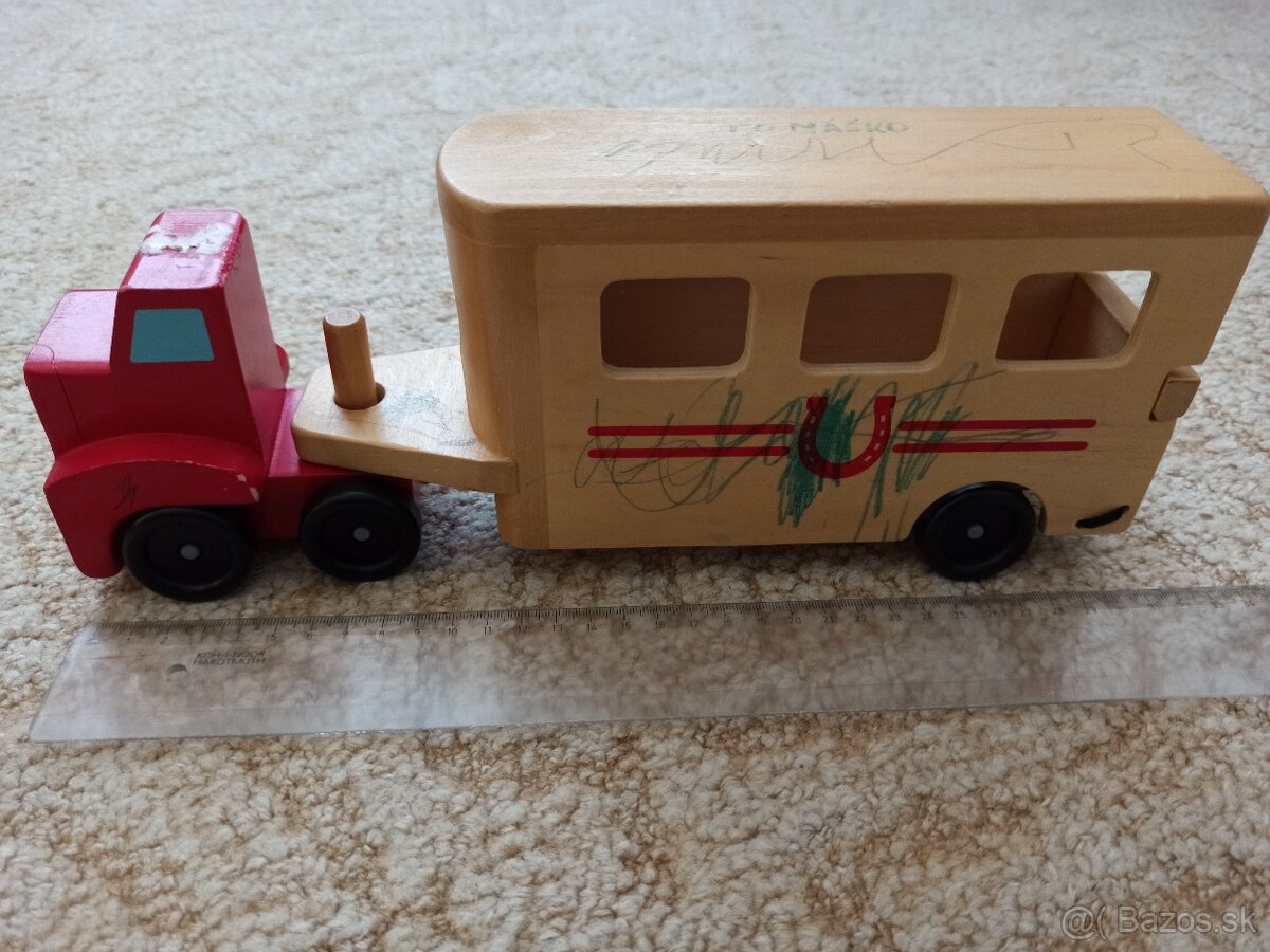Drevené autíčko na prepravu koníka
