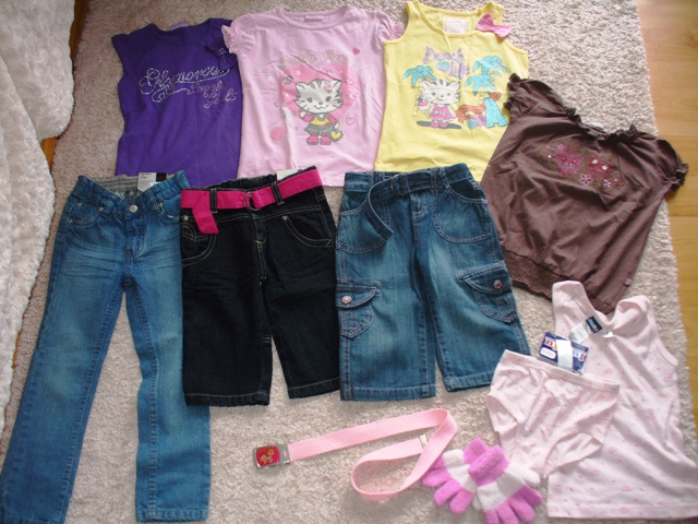Predám balík oblečka č.110,veci sú nové,nestihli sme vynosiť,dlhé gate ,kraťase,tričká, tieľko s gaťkami a opasok, spolu len za 19€+3,50€poš
