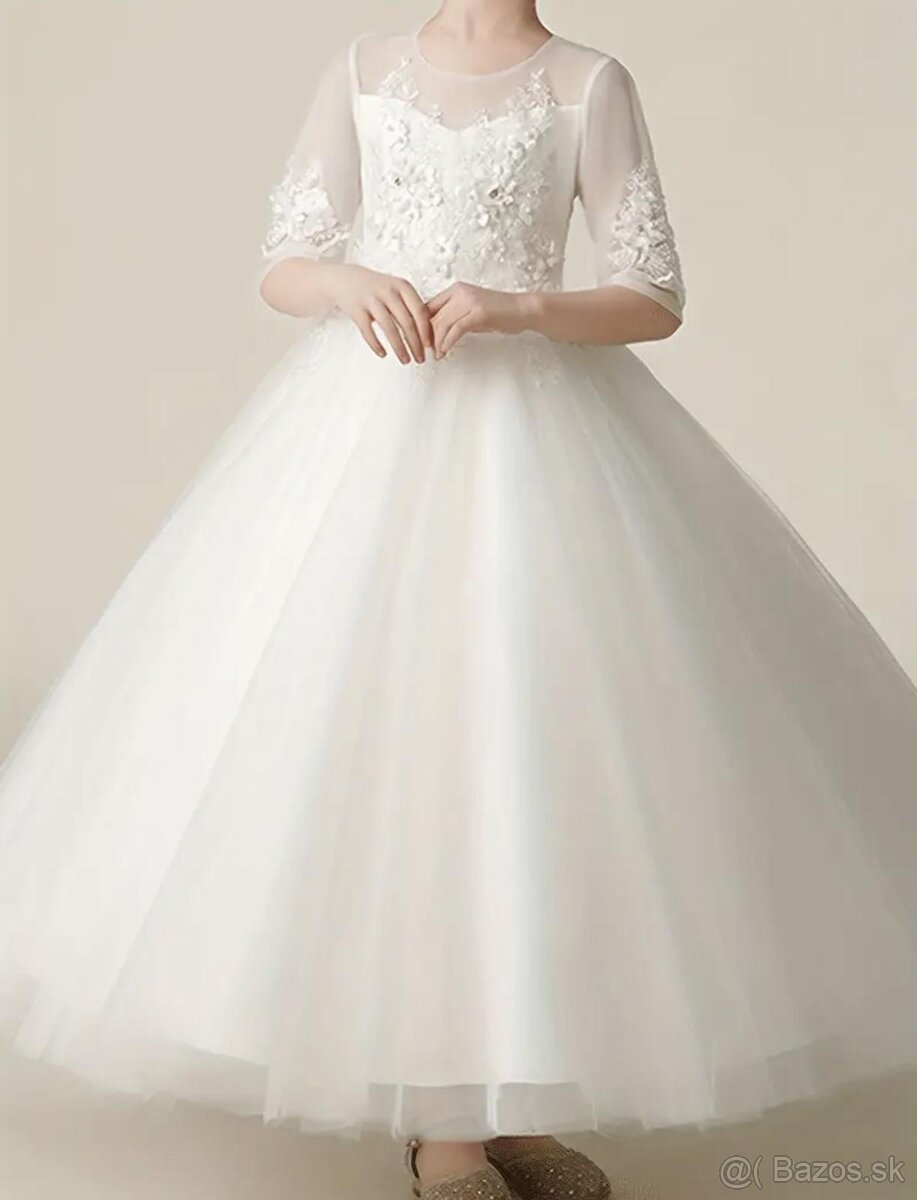 Saty-prve svate prijimanie - [21.3. 2026]Preda tieto nadherne saty pre dievcatko vyska cca 140-150 s gumenou vystuzou ktora sa prisposobi aj mensiemu ci vacsiemu dievcatku.