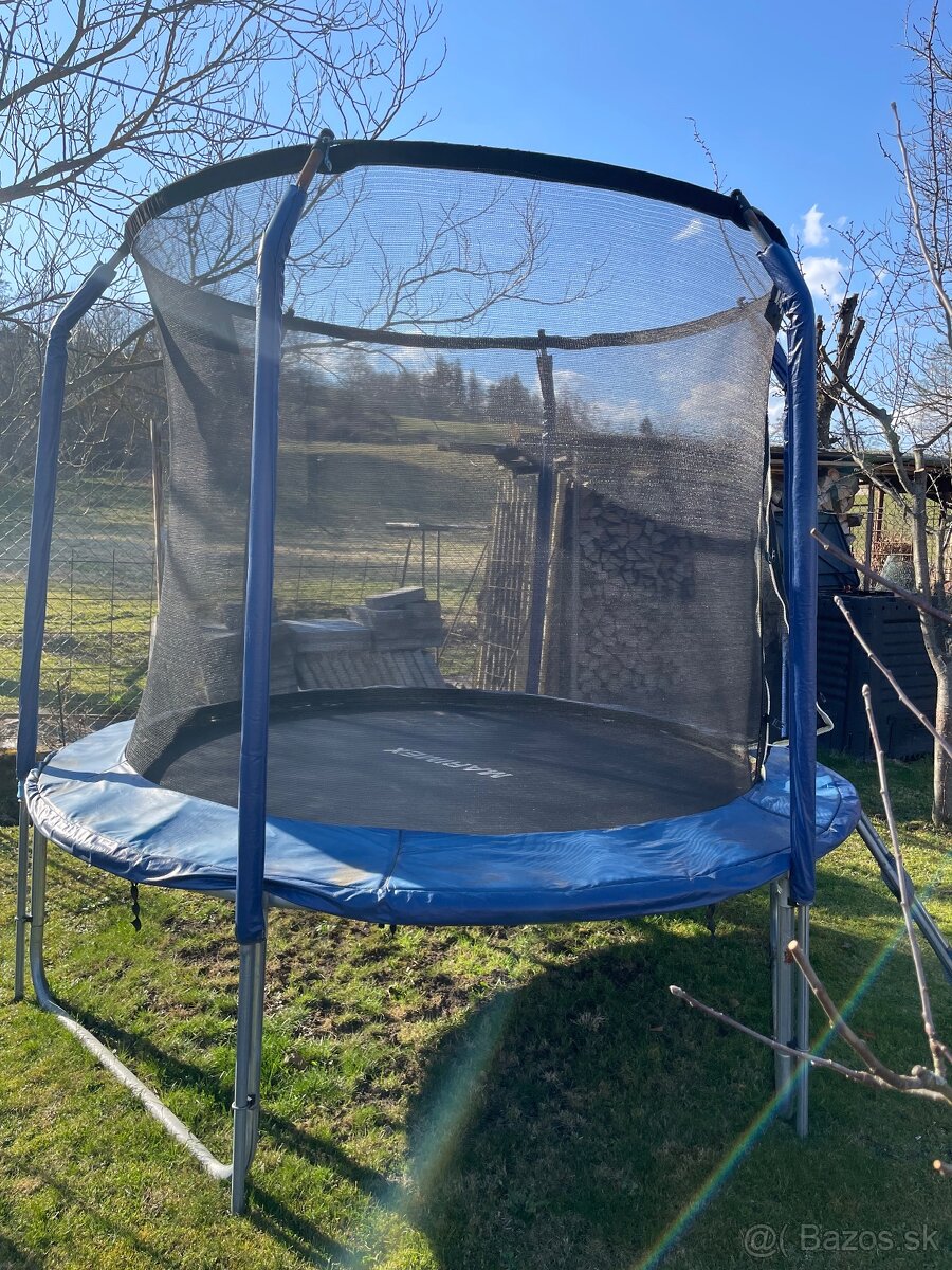 Predam trampolinu MARIMEX so schodikmi. Pouzivana, funkcna. Je potrebne opravit zips, pripadne vymenit celu sietku. Priemer 2m