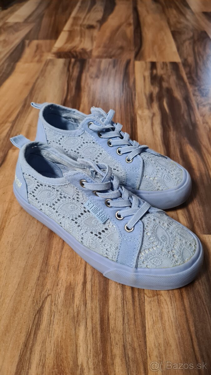 Predám dievčenské tenisky plátenky Big Star, veľkosť 31, reálne skôr 30. Vnútorná dĺžka stielky (VD): 19,5 cm. Stav nových, nenosené (Detská obuv, veľkosť 31). Pozri aj moje ďalšie inzeráty.