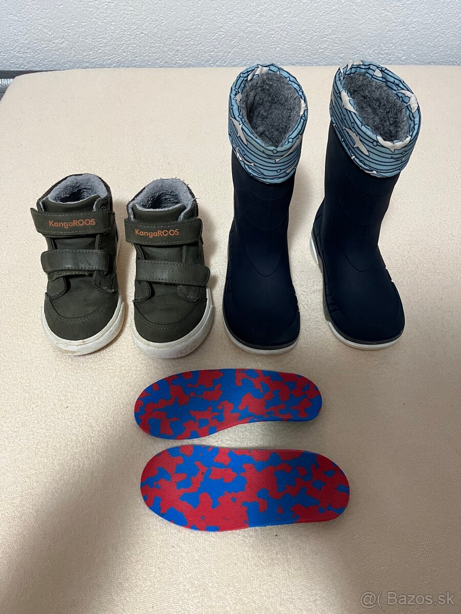 Predám gumáky Lupilu veľkosť 25 s vyberateľnou vložkou a jesenné topánky veľkosť 25 KangaRoos spolu s vložkou na podporu klenby.