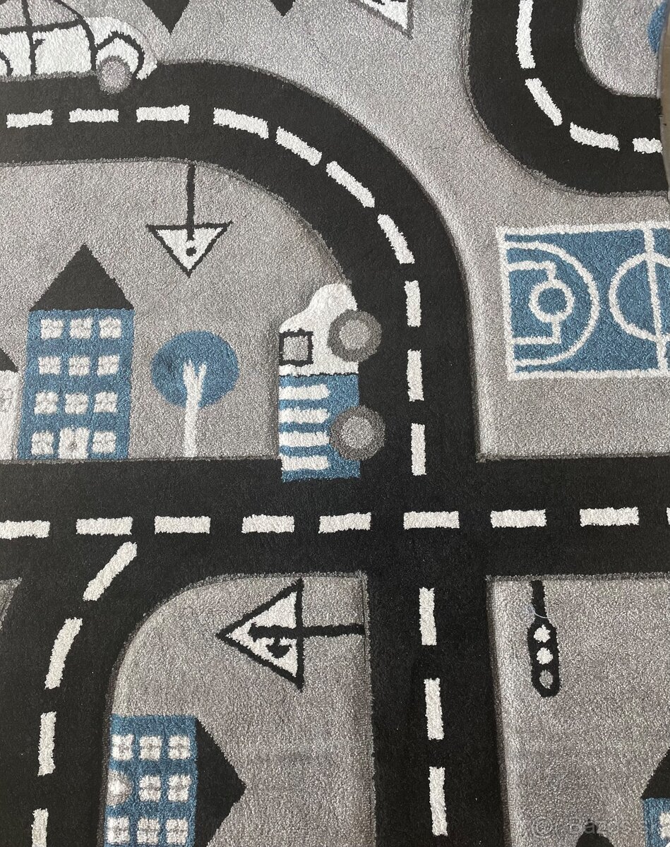 Detský koberec s motívom mesta a ciest 2x3m - [16.3. 2026]Predám pekný a zachovalý detský koberec s obľúbeným motívom mesta, ciest a kruhových objazdov. Ideálny pre hru s autíčkami, rozvíja detskú predstavivosť.