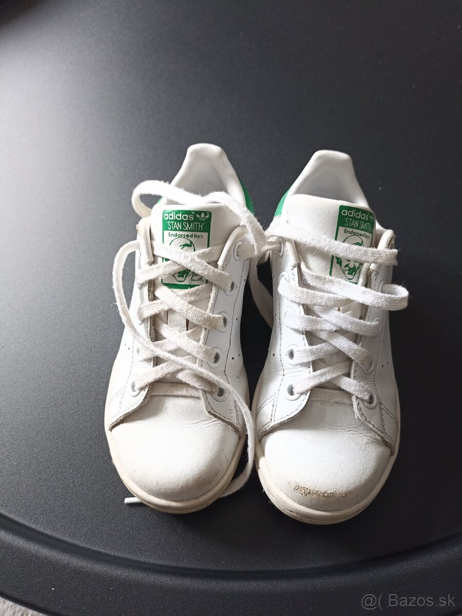 Predám kožené tenisky zn. Adidas STAN SMITH. Na ľavej nohe trošku špička ošúchaná, inak v dobrom stave. Pôvodná cena 56 eur.Veľkosť 30.