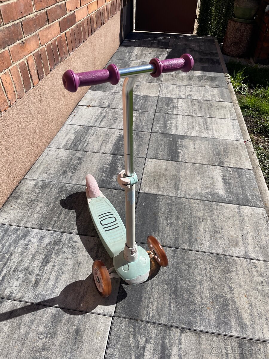 Detská kolobežkách s tromi kolieskami Oxelo . Max nosnosť 50kg. Skladateľka , kolieska v tme svietia . Plne funkčná , nezničena , kúpená v Decathlone .