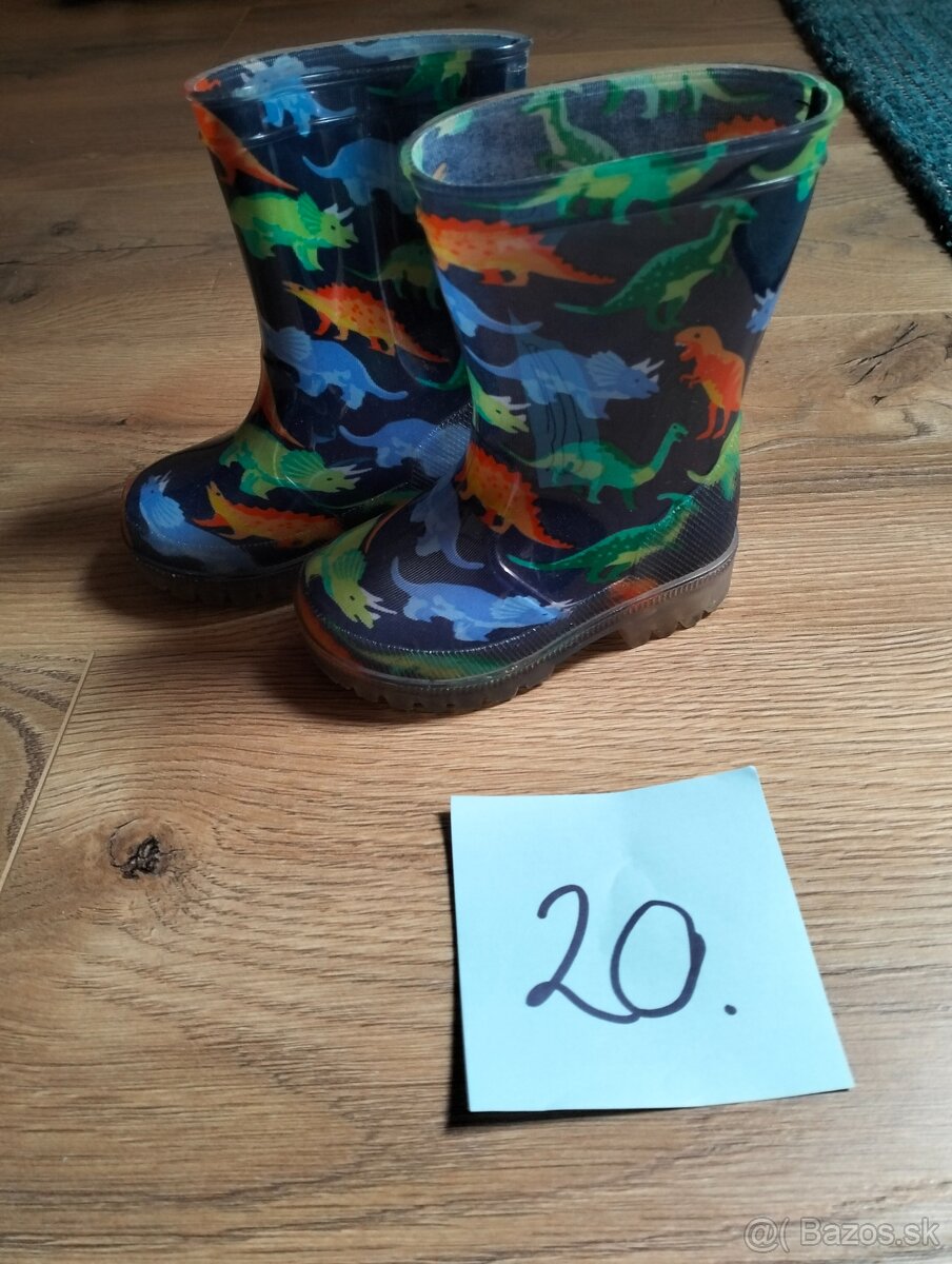 Gumáky veľ. 28 - [11.3. 2026]Predám párkrát obuté gumáky značky Lupilu veľkosť 28. Vnútri je textilná stielka pre pohodlnejšie nosenie a lepšiu tepelnú izoláciu. Gumáky sú z mäkkej gumy. Vďaka dvom uškám na každej čižme sa gumáky deťom ľahko obúvajú.