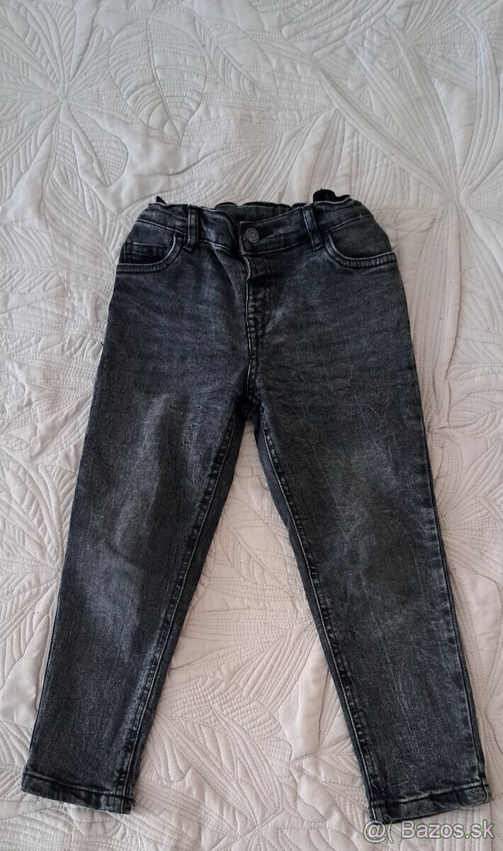 Detské rifle 122-128 - [22.3. 2026]Pohodlné rifle moderného strihu s nastaviteľným pásom, ako nové. Veľkosť 122-128 cm, vonkajšia dľžka od pása 72 cm, vnútorná 54 cm, pás 30 cm. Cena 3,50 EUR.