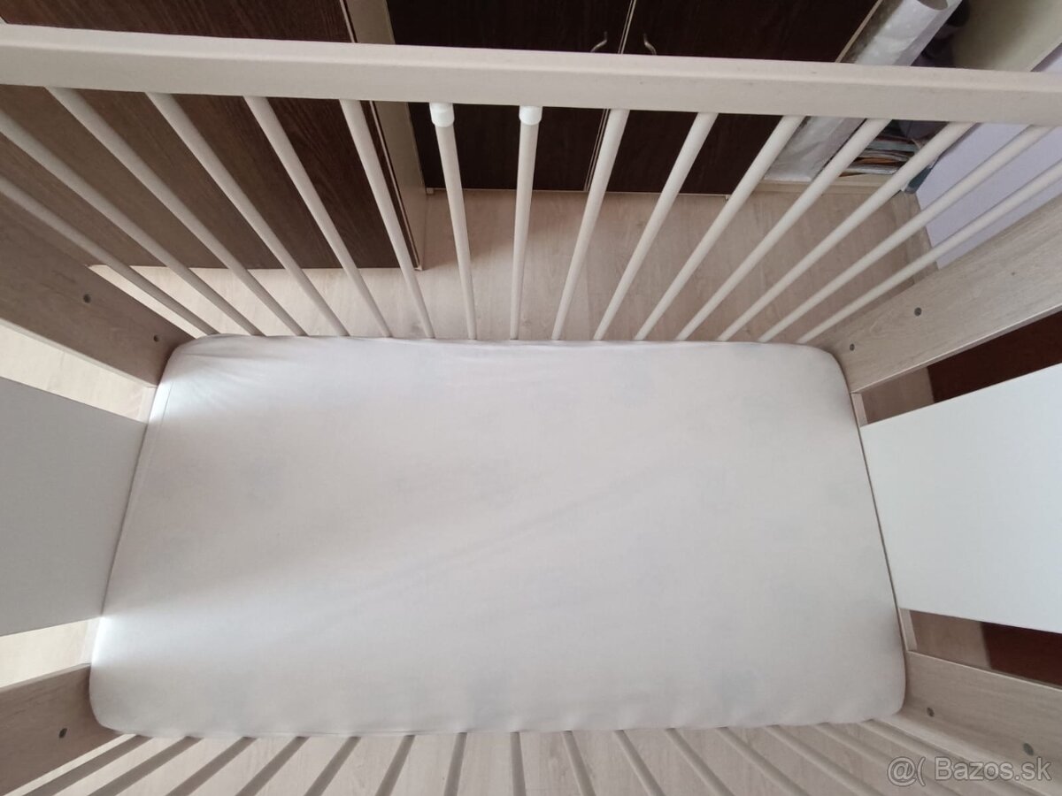Predam detsku postielku 120x60 cm s matracom mierne opotrebenie, na jednej bocnici sa daju vyberat 2 tycky pre lepsi prechod vasho dietatka :)