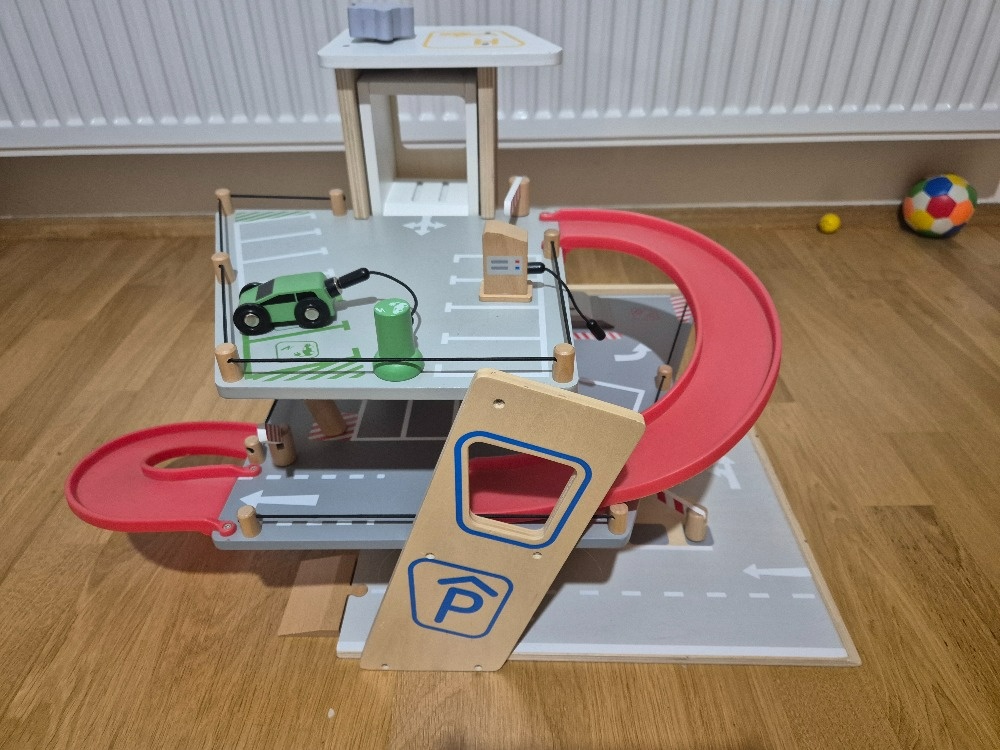 Ponúka tri bohato vybavené podlažia prepojené atraktívnym funkčným výťahom a zábavnými, na seba plynule nadväzujúcimi rampami. Jej súčasťou je dvojica autíčok, ktoré môžu pri fantastických hrách využiť pumpy, nabíjacie stanice, zdvíhacie rampy alebo umývačky s realistickými kefami. Každá z úrovní je navyše vybavená mechanickou závorou pre dokonale pútavé zážitky.