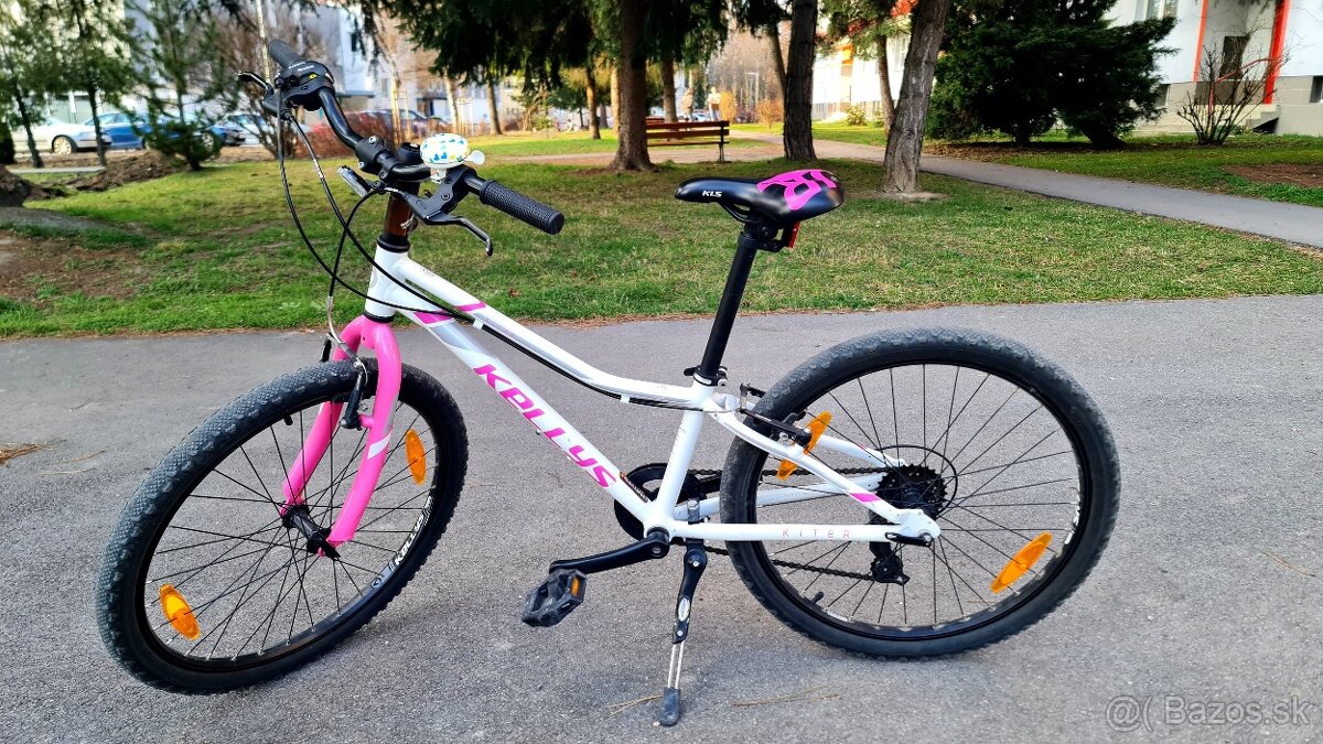 Predám detský horský bicykel Kellys Kitter 30 veľľkosť 24" v ružovo-bielej farebnej kombinácii. Je vhodný pre deti vo výške približne 125-145 cm (7-11 rokov). 7 prevodov, veľmi ľahko ovládateľné pre deti. Bicykel je vo veľmi dobrom stave, pravidelne udržiavaný. Bol kúpený ako nový a používaný bol 3 sezóny na asfaltových cestách. Cena: 170 €. Len osobný odber v Žiline alebo okolí.