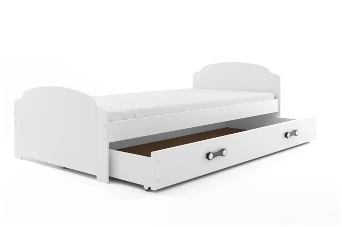 Predám detskú posteľ s matracom, so zásuvkou 90x200. Zásuvka obsahuje aj rošt a matrac, takže sa tam vyspí ďalšie dieťa.