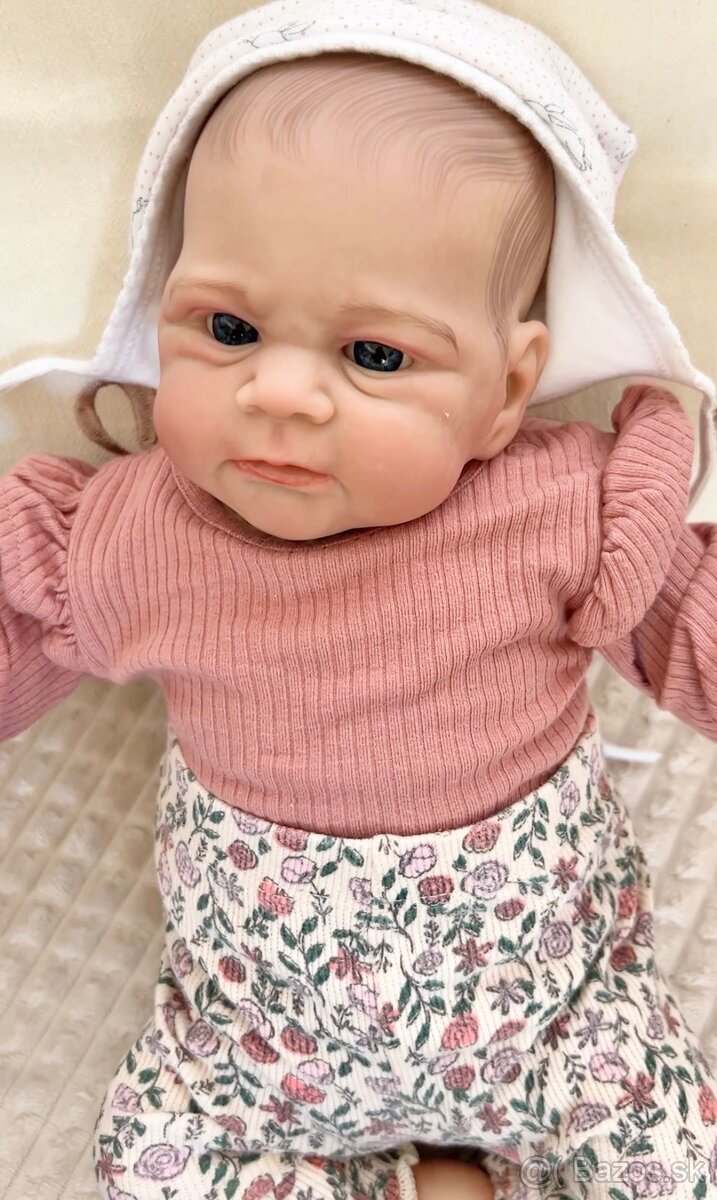 Miminko s látkovým telíčkom, zaťažené na 1600g, posielam oblečené ako na fotke, pribalím náhradný cumlík, pyžamko , flasku a rodný list . Bábika meria 45 cm , má maľované vlásky a cumlík na magnet .