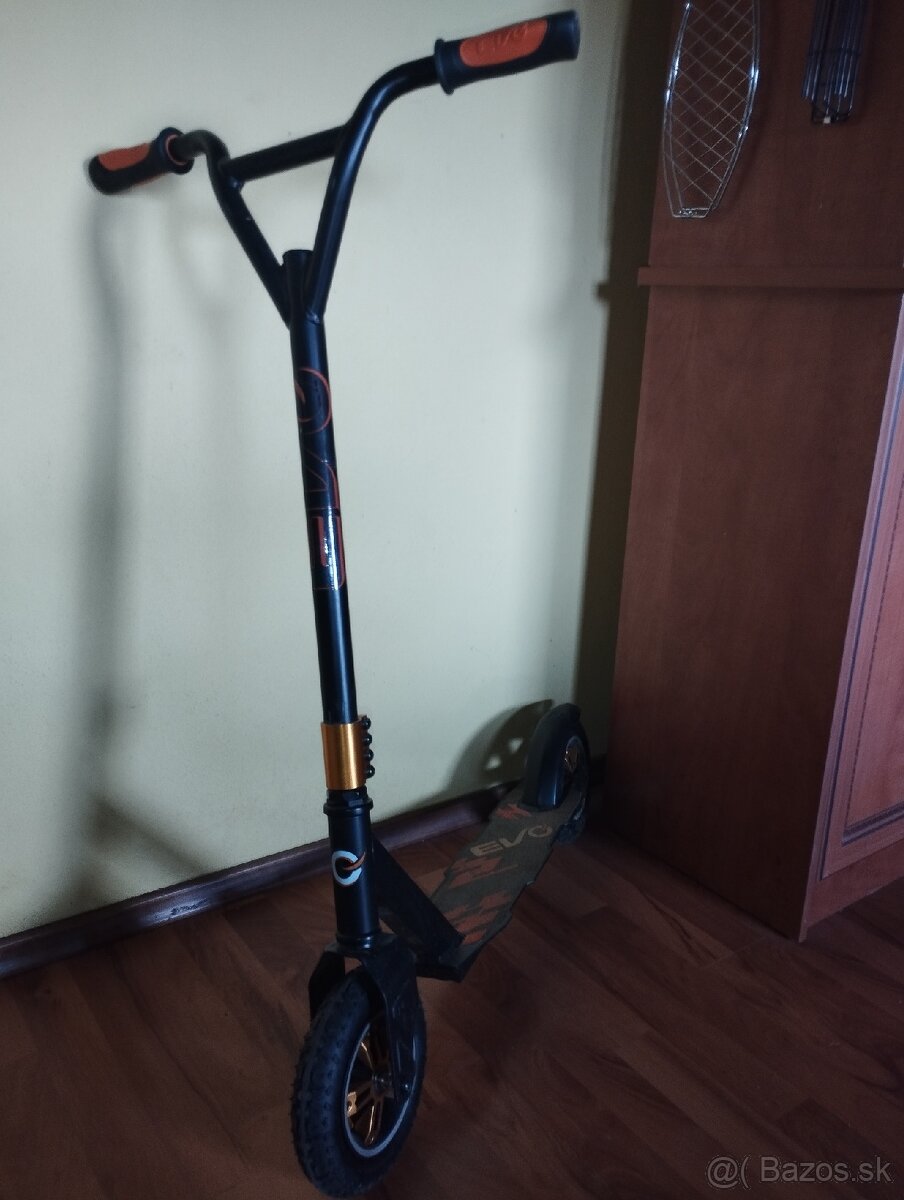 Predám málo používanú a veľmi zachovalú kolobežku. Má kvalitný a pevný rám. Pogumovane rukoväte. Veľké nafukovacie kolesá s priemerom 200mm. Protišmykové stúpalo s rozmermi 58*11cm. Nosnosť:100kg. Pre deti už od 6 rokov do 12.