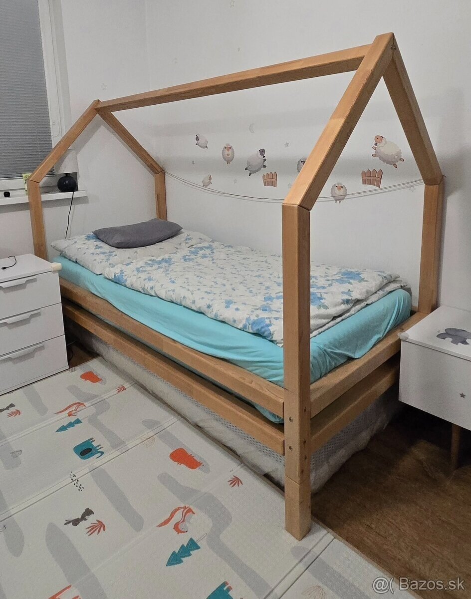 Domčekova posteľ - [14.3. 2026]Predám rok používanú domčekovú posteľ s madracom. Výhodou sú šuflíky na úložný priestor.