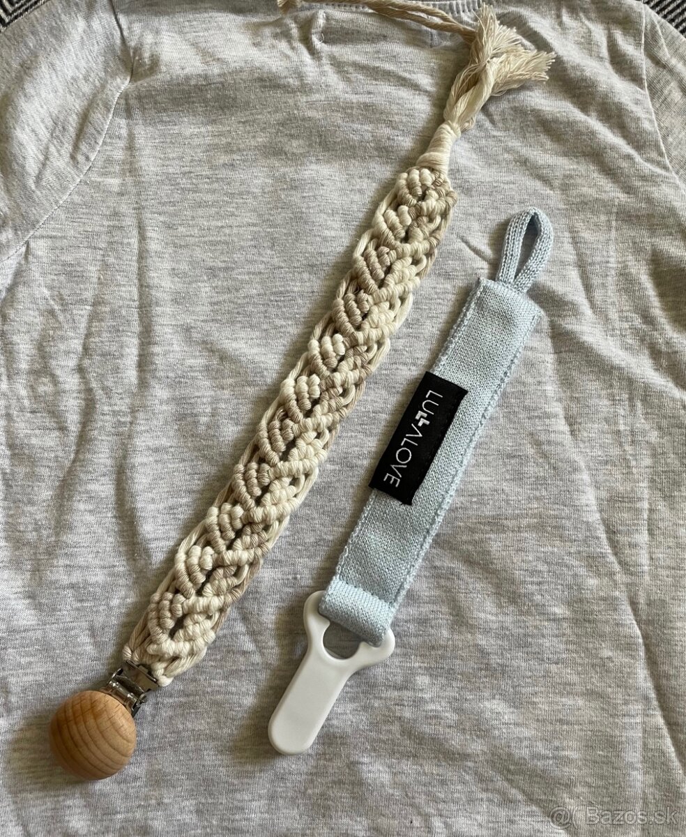 Predám nový nepoužitý držiak na cumlík. Béžový macrame 3€ (hand made urobený na objednávku). Modrý už nie je v ponuke.