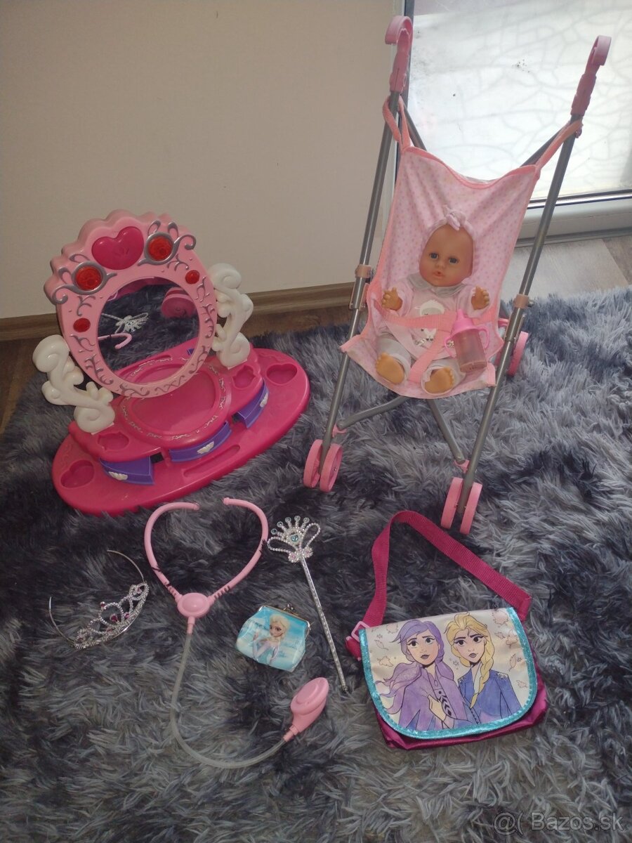 Kočiar, bábika, doplnky - [9.3. 2026]Ponúkam balík hračiek, kočiar, bábika, doplnky. Bábika má 57cm. Cena za všetko 15€. Dobierkou neposielam.