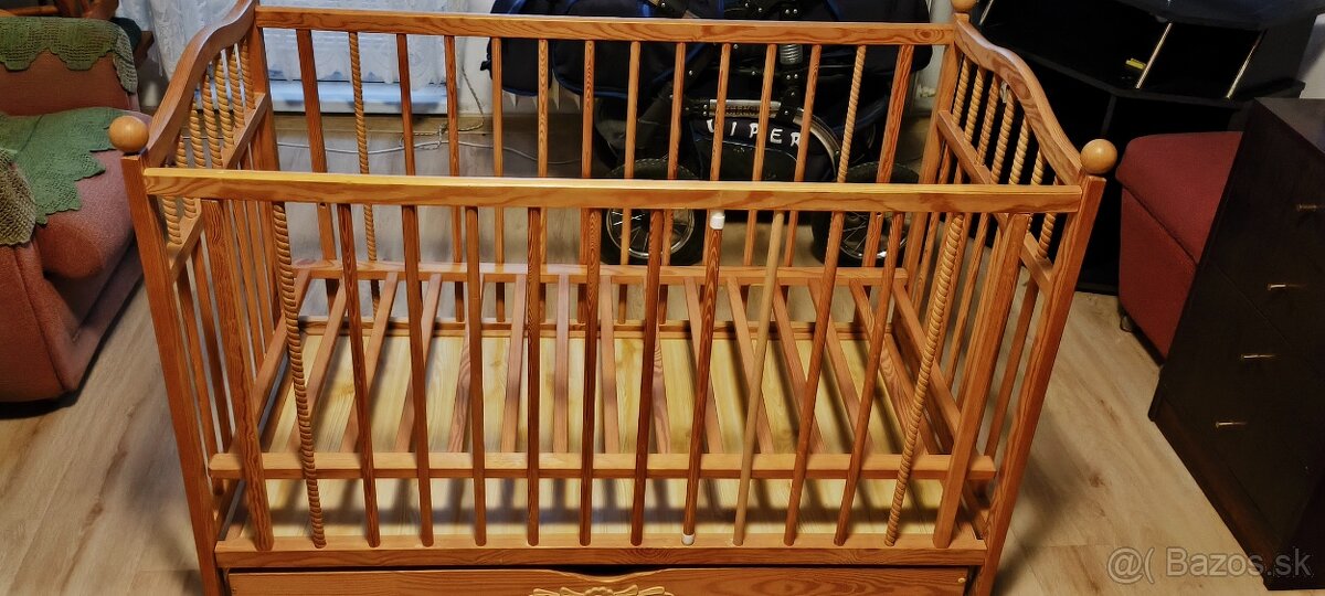 Detská postieľka s pultom - [21.3. 2026]Predám krásnu, zachovalú detskú postieľku s prebalovacim pultom,s roštom aj matracom (matrac používaný). Postieľka sa da nastavovať podľa veku dieťaťa,výška roštu - 3 výšky. Z postieľky sa da neskôr spraviť aj väčšia posteľ,návod ale uz nemám k dispozícii.