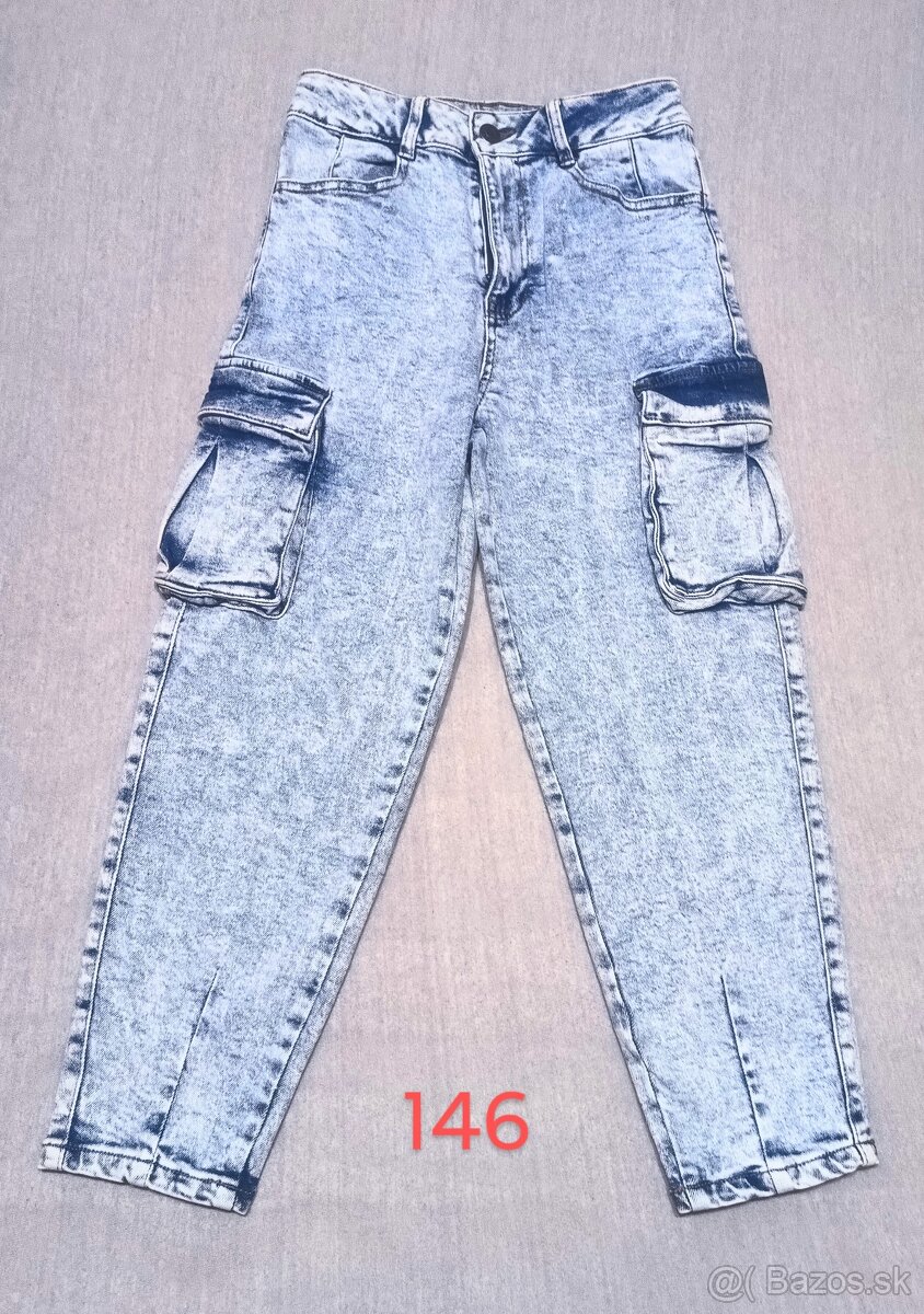 Predám dievčenské rifle. Sú vo veľkosti 146, tak od 10 do 11 rokov. Len odtrhnutá visačka. S bočnými vreckami, dole zúžené. Cena je 3 Eur. K tomu pribalím spodné prádlo s visačkou v rovnakej veľkosti.