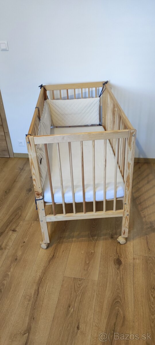 Detska postielka - [22.3. 2026]Predam detsku postielku s posuvnou bocbicou, v cene je vsetko co je na foto: vacky na celo postielky, matrac, hniezdo
