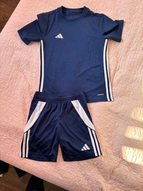 Tréningové tričko Adidas. Pár krát oblečené, top stav. Veľkosť 152. Rozmery prsia 42x2 cm, dĺžka 54 cm. Elastické. Mám k nemu aj trenky v druhom inzeráte. Za cenu 5 € je iba tričko!!! Poštovné podľa tarify.