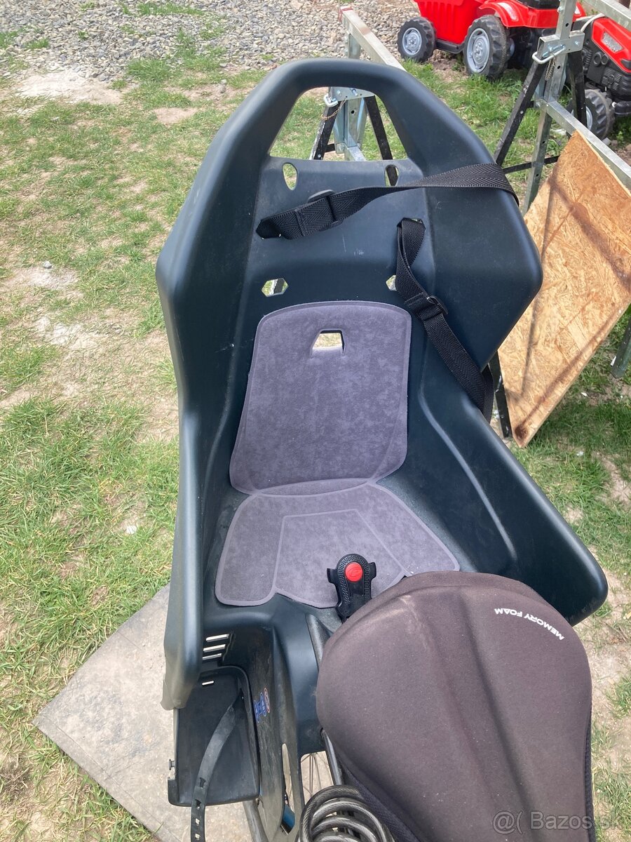 zadná verzia, upevňovacia kovová konštrukcia na bicykle s úchytom na sedlovú trubku,na priemer 28-40 mm, nastaviteľné opierky na nohy s bezpečnostnými popruhami, trojbodový bezp. pás pre zaistenie dieťaťa, odnímatelná výstelka, držiak na sedl.trubku pre rýchlu montáž/demontáž sedačky, max nosnost od 9 do 22 kg