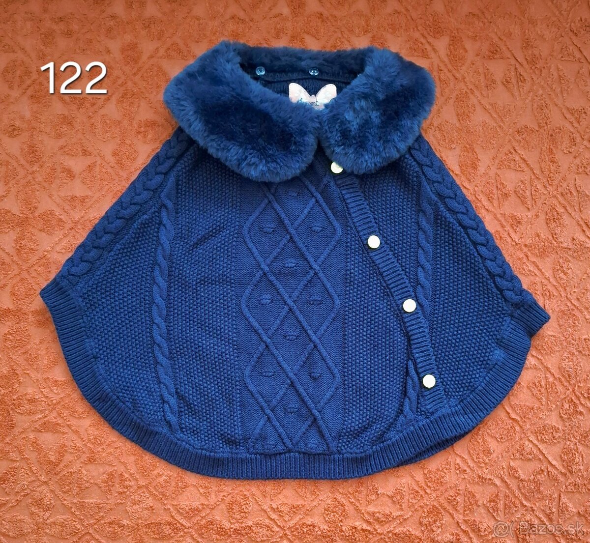 Predám nové, nenosené, dievčenské pončo. Je vo veľkosti 122, tak od 6 do 7 rokov. Odnímateľný kožušinový golier. Má rukávy. Značka Sergent Major. Cena je 4 Eur.
