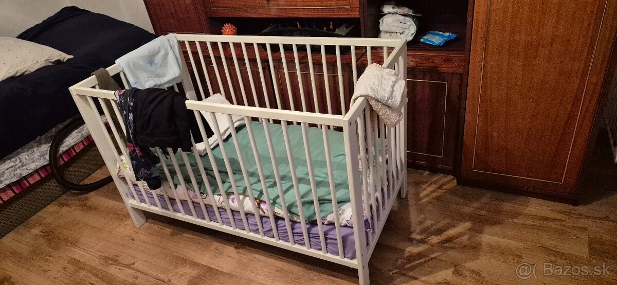 Detská postieľka - [22.3. 2026]Predám zachovalu detskú postieľku bielej farby s matracov, rozmery 60x120, rošt nastaviteľný do troch polôh,odoberatelne zábradlie kvôli vychadzaniu