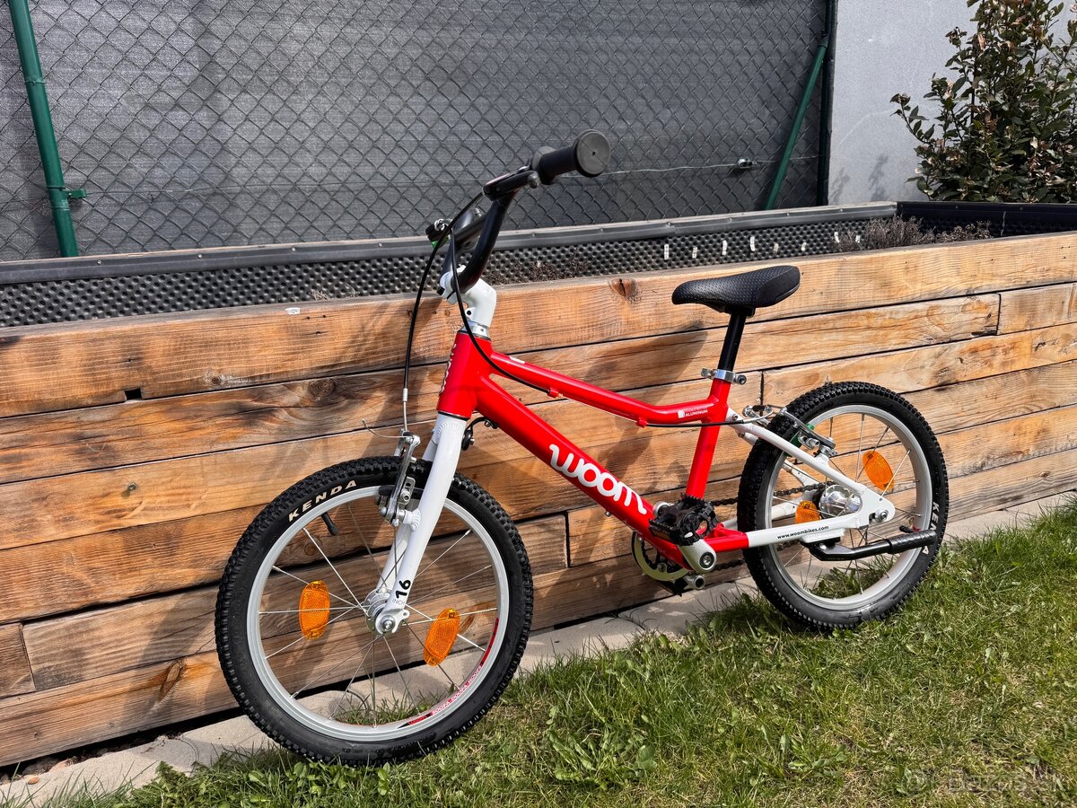 Predám kvalitný detský bicykel Woom 3 v krásnej unisex červenej farbe.