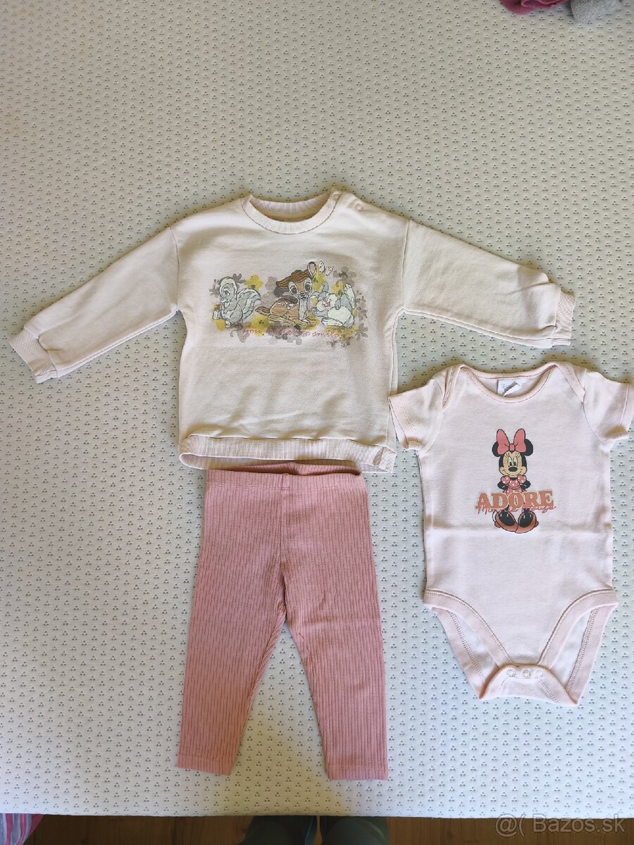 Dievčenská 3dielna súprava, značky Disney Baby, veľkosť 9-12 mesiacov. Mikina má mini fliačik, zo zadu, viď posledné foto, inak veľmi pekný stav . Cena:3,50€