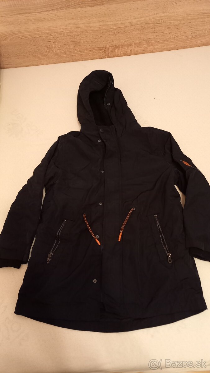 Veľkosť bundy je 134. Vo vnútri sa dá odopnúť zateplená časť. V pase sa dá ešte stiahnuť.
