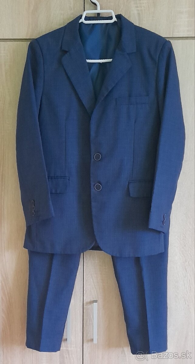 Predám tmavomodrý oblek pre chlapca. Veľkosť 134/140. Vo veľmi dobrom stave, použitý 2krát.