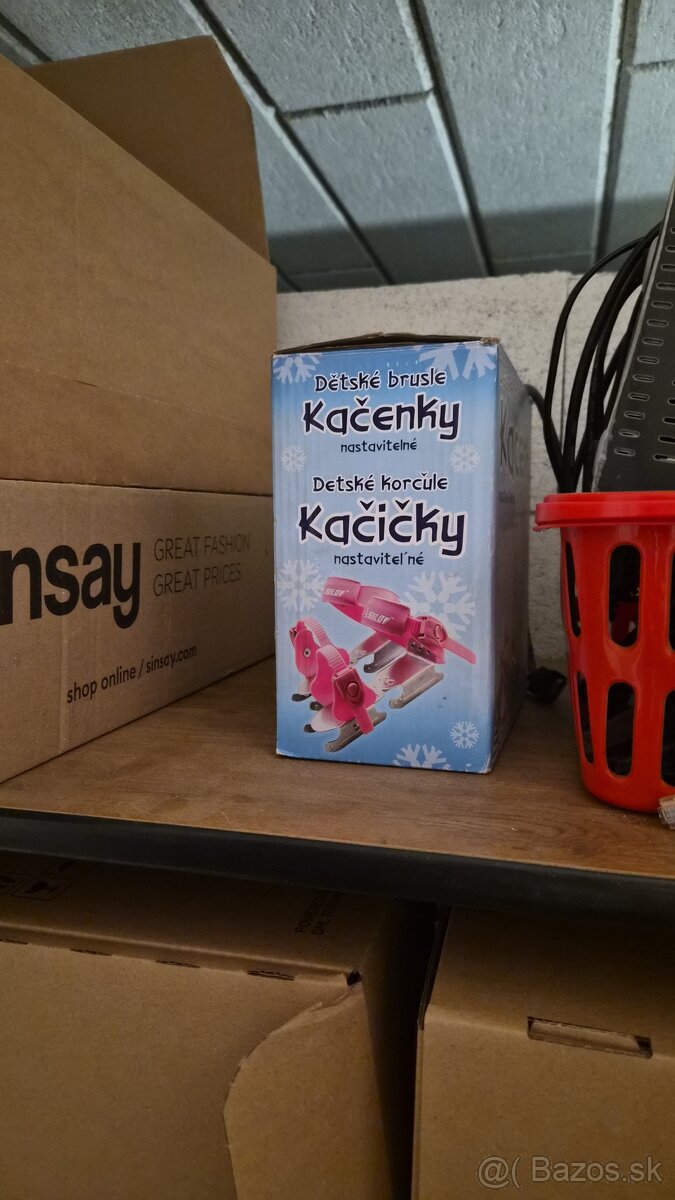 Korčule na ľad kačičky - [6.2. 2026]Dievčenské prvé korčule na ľad tzv.kačenky / kačičky. Ružová farba. Veľmi pekný stav. Bez poškodení. Vhodné na prvé zoznámenie sa s ľadom. Poskytujú väčšiu stabilitu na ľade. Vhodné na vek 2-5r.