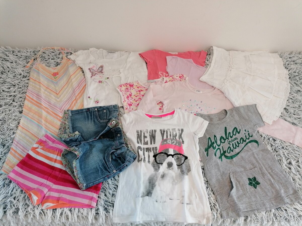 Oblečenie - balík A veľkosť 116 - 122 - [22.3. 2026]Predám mix letného oblečenia pre dievčatko, veľkosť 116 - 122 (cca 6 - 7 rokov). Tričká, šaty Next a biela krajka Cubus, rifle, kraťasy, plavky, celkom 14 ks, pozri foto.