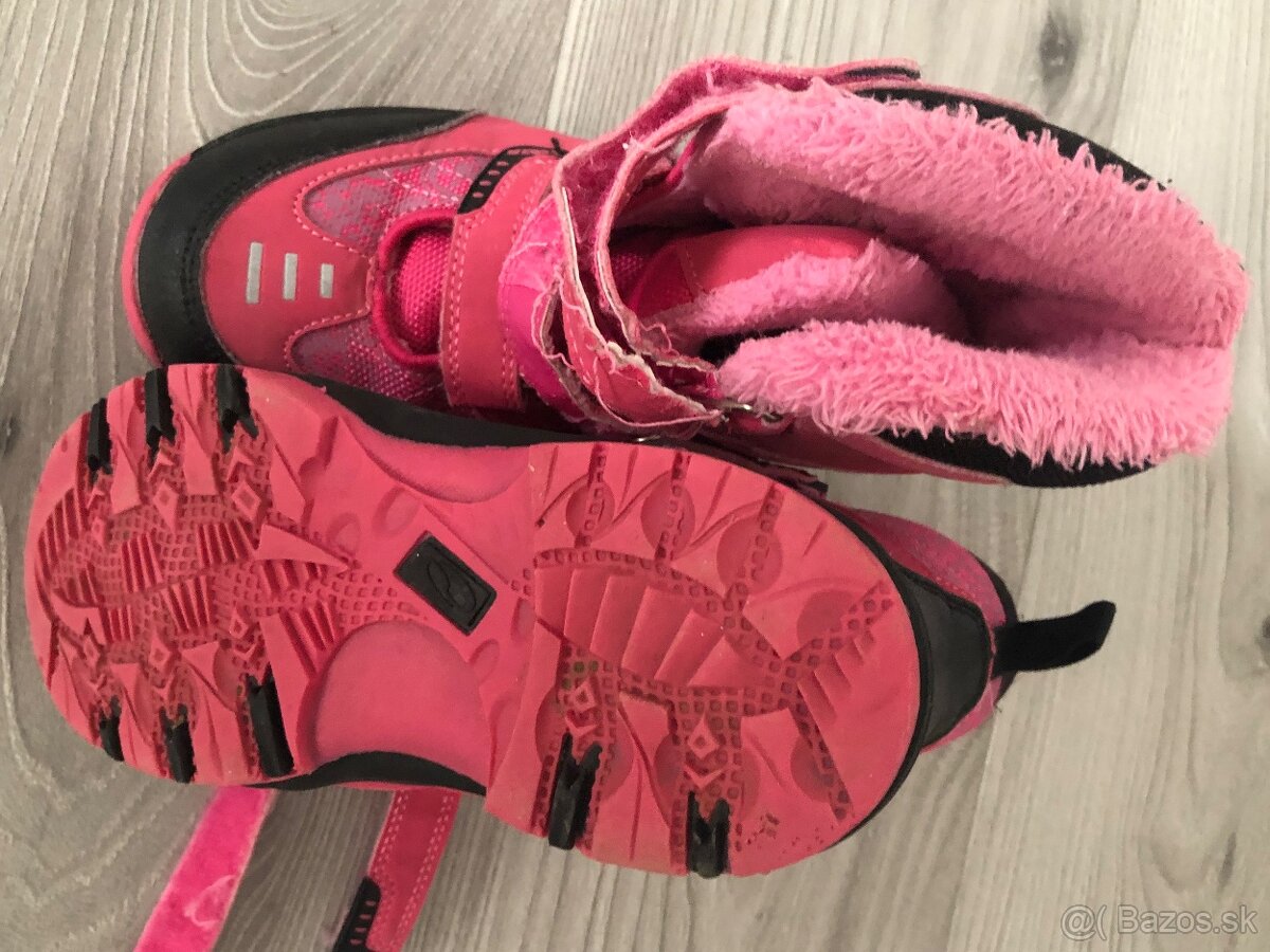 Zimné topánky ružovočierne veľkosť 31, nízke borodovočierne veľkosť 29, staroružové so šnúrkami na boku so zipsom veľkost 33, bieločierne so šnúrkami na boku so zipsom velmkosť 33.