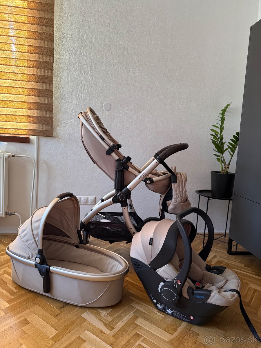 Predám trojkombináciu Egg2 vo farbe Feather. Ide o sadu 9 v 1 (Platinum sada), ktorá obsahuje konštrukciu, vaničku, športovú časť, autosedačku vrátane novorodeneckých vložiek, isofixovú bázu, adaptéry na vajíčko, zvyšovacie adaptéry, batoh (súčasťou je prebaľovacia podložka), držiak na nápoje. Jediné, čo nie je súčasťou je fusak Egg. Zadarmo pribalím originál Egg slnečník na kočiar,vložku proti poteniu do vajíčka (dokopy v hodnote ďalších vyše 100€). Zároveň prikladám dva ochranné poťahy proti dažďu a sieťku proti hmyzu.