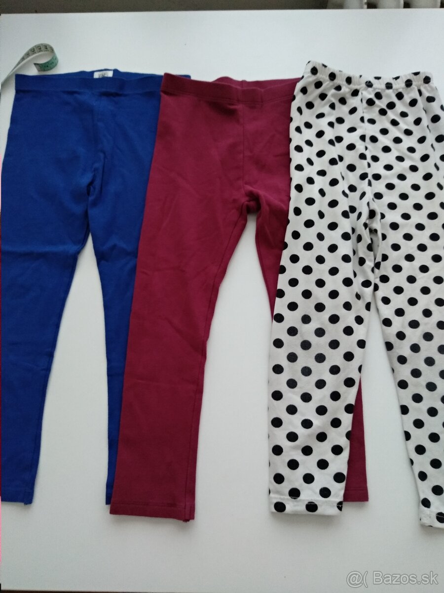 Legíny tmavomodré f&f na 5-6 rokov, bordove lupilu 98/104 a biele s guličkami iná značka. Na dĺžku sú všetky tri rovnaké. Bez poškodenia, ale biele majú na kolieskach už zmolky. Tie pridávam zdarma. Dĺžka na fotkách. Cena spolu