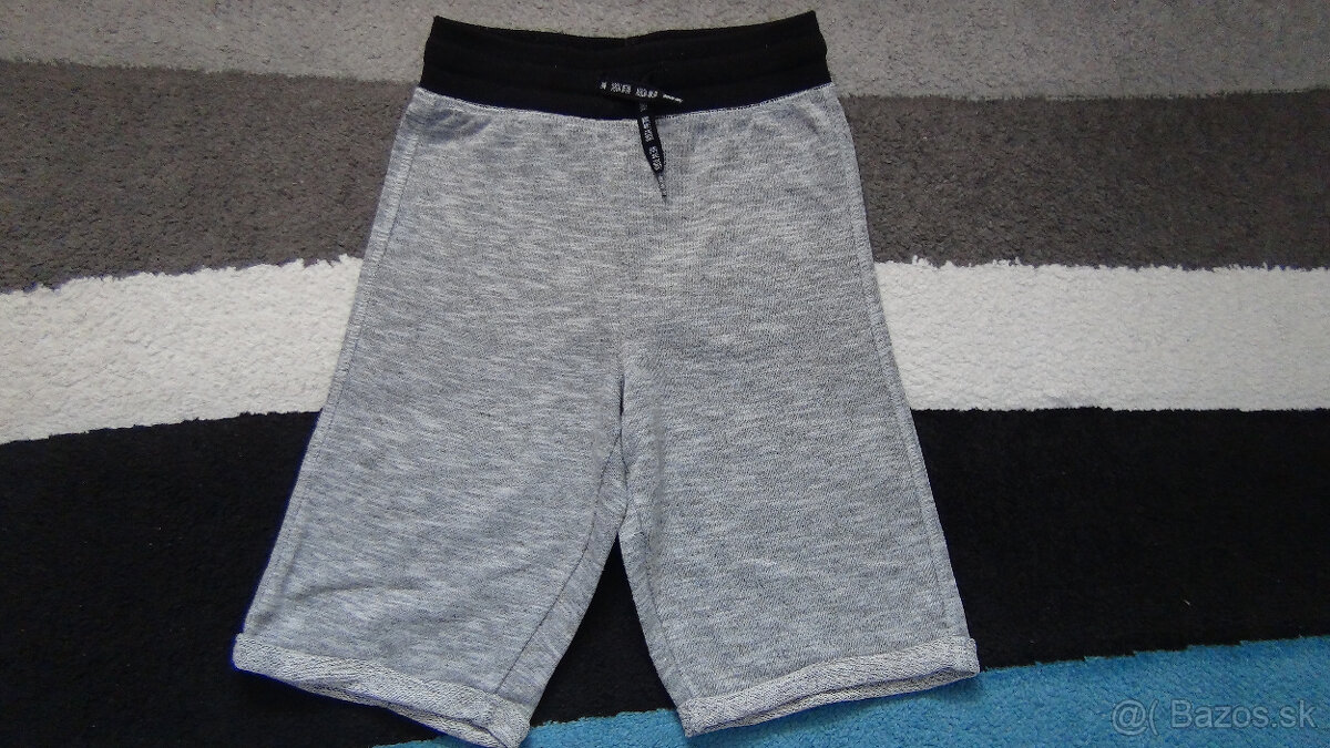 Predám zachovalé chlapčenské teplákové šortky po kolená značky Dopodopo vo veľkosti 128. Šortky majú v páse gumu a aj šnúrky na stiahnutie. Celková dĺžka predného dielu je 43cm, dĺžka zadného dielu je 46cm, dĺžka od rozkroka je 29cm, šírka v páse je 28cm.