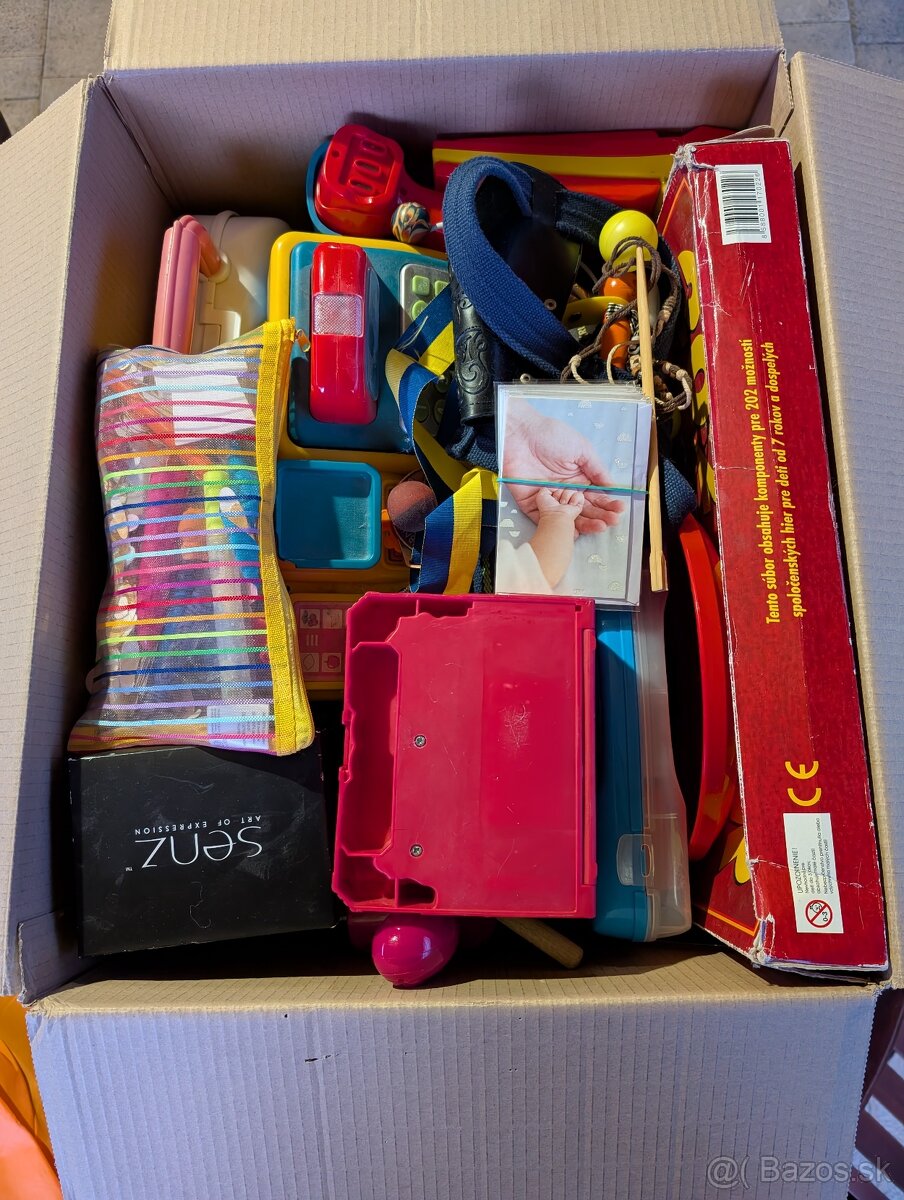 Darujem za odvoz dve plné krabice rôznych používaných hračiek ako náramky, počítadlo, lekárnička, medaily, peračník, pastelky, zápisníky, guličky, náhrdelníky, loptičky, kreatívne doplnky, pokladnica, hračkársky notebook, čelenky, krabičky, vrecúška...