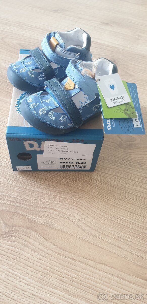 Predám nové D.D.step BAREFOOT topánočky číslo 20. Neutrálna farba vhodná tak pre dievčatko ako chlapca. Topánočky boli raz obuté. Bohužiaľ sú pre nás malé. Pôvodná cena 39.90. Všetko originál + krabica, všetky štítky, úplne komplet.