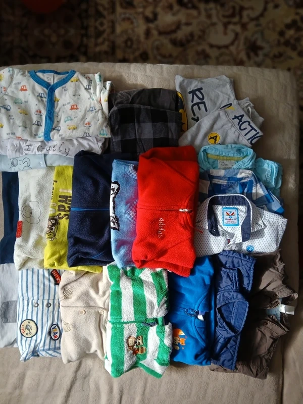 Predám 3 ks pyžamká, 3 košele, 2 menčestrové nohavice zvnútra podšité bavlnou, 1 svetrík a vestu s mačičkou, 3 tričká s dlhým rukávom, 2 flísové mikiny so zapínaním na zips, 1 tenkú teplákovú súpravu, 2 hrubšie tričká/mikiny, 1 tenkú vetrovku a vestu na zapínanie podšitú flísom, 2 teplákové mikiny na zips. Veci sú rôznych značiek: lupilu, ergee, baby club, fox&bunny... Veci sú v dobrom stave.