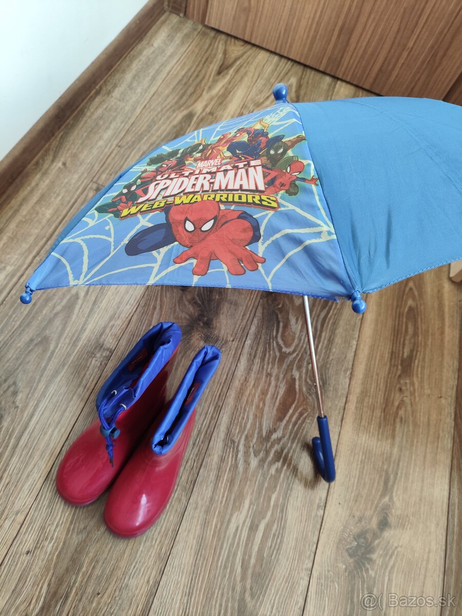 Ponúkam v top stave dáždnik a gumáky Spiderman. Gumáky obuté cca 2x ako nové. Cena spolu 10e