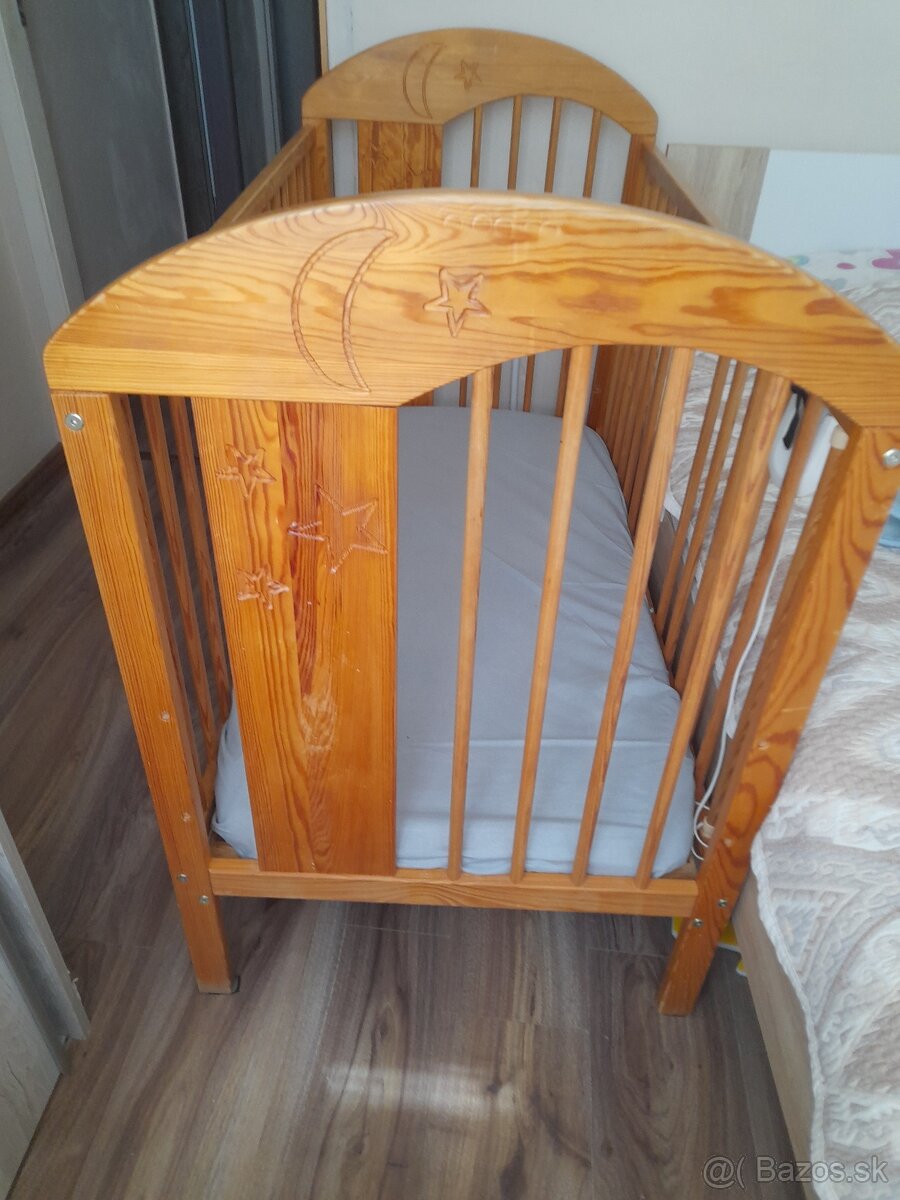 Detská postieľka so zásuvkou 120x60 cm - [24.3. 2026]Predám kvalitnú detskú postieľku z masívneho borovicového dreva značky vo farbe teak. Postieľka je v dobrom stave, ideálna pre bábätká a batoľatá 0-3 roky.