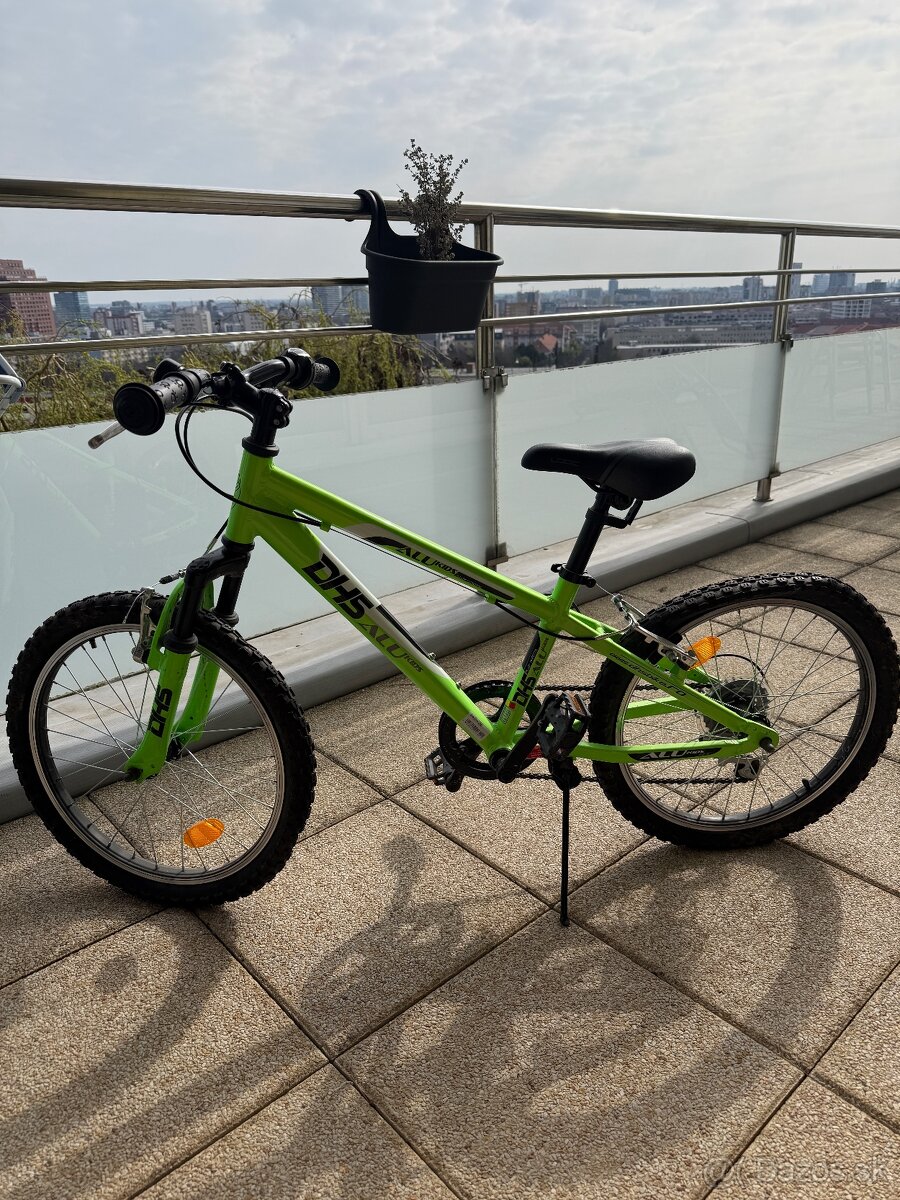 Predám detský bicykel DHS ALU Kids, veľkosť kolies 20”, nosnosť 45 kg. Bicykel bol málo používaný, je potrebné vymeniť gumy