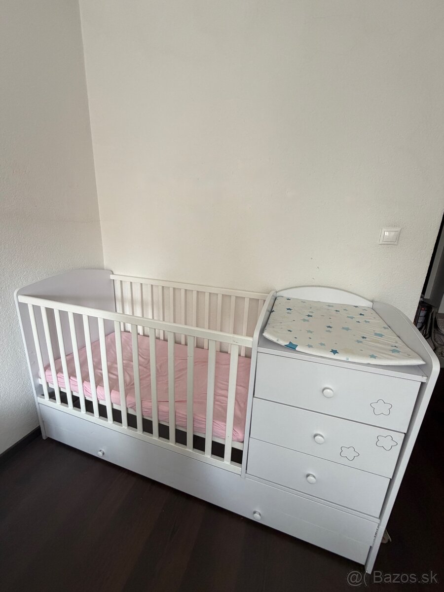 Predám detskú postieľku s prebaľovacím pultom.