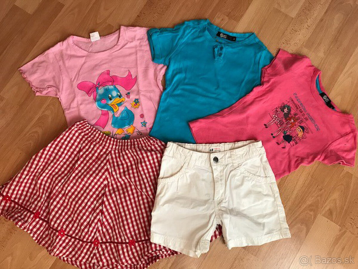 5 ks nosených vecí pre chudšie dievča na letné obdobie, veľkosť 104 (3-4 roky), rôznych značiek (zoznam podľa fotiek):