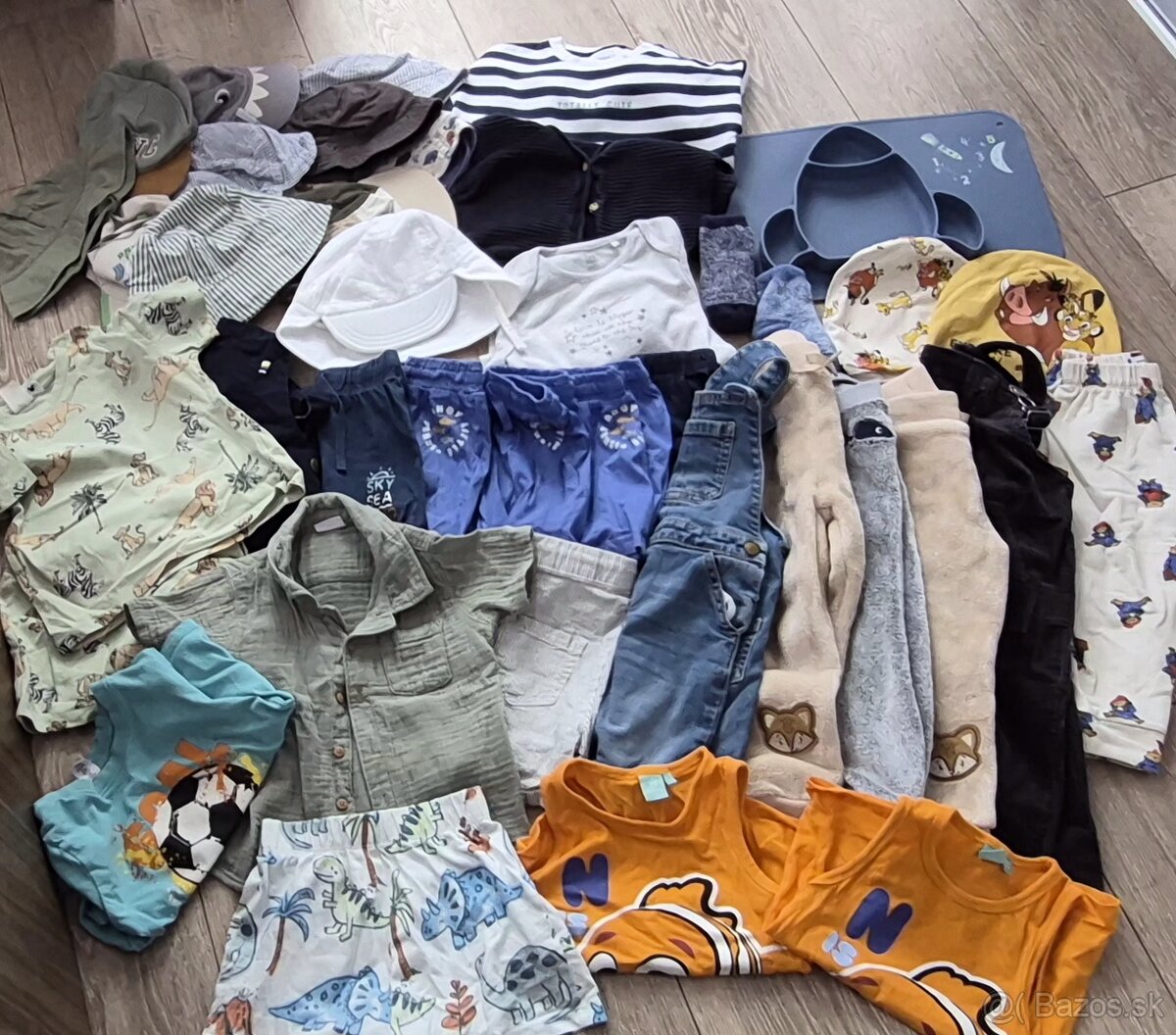 Balik pre chlapčeka veľkosť 92, približne 40ks. Veci prevažne top stav. Miska na papanie, čiapky, klobuky a šiltovky, krátke tričká, tielka, kratase, ponozky, teplaky. Najlepšie osobne v BA Podunajské Biskupice, ale môžem aj poslať.