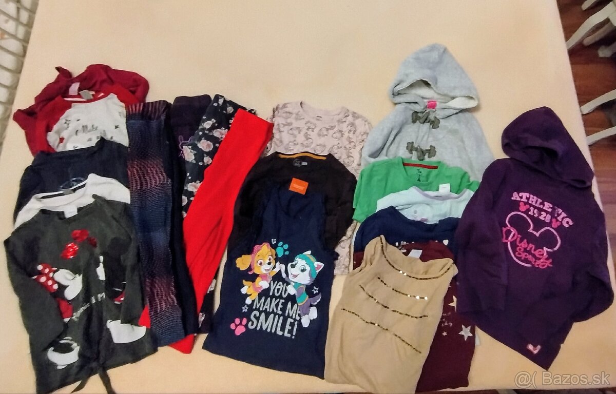 Na predaj balík 19 kusov. Veľkostne sedí na 128. Mikiny, tričká, nohavice, legíny.