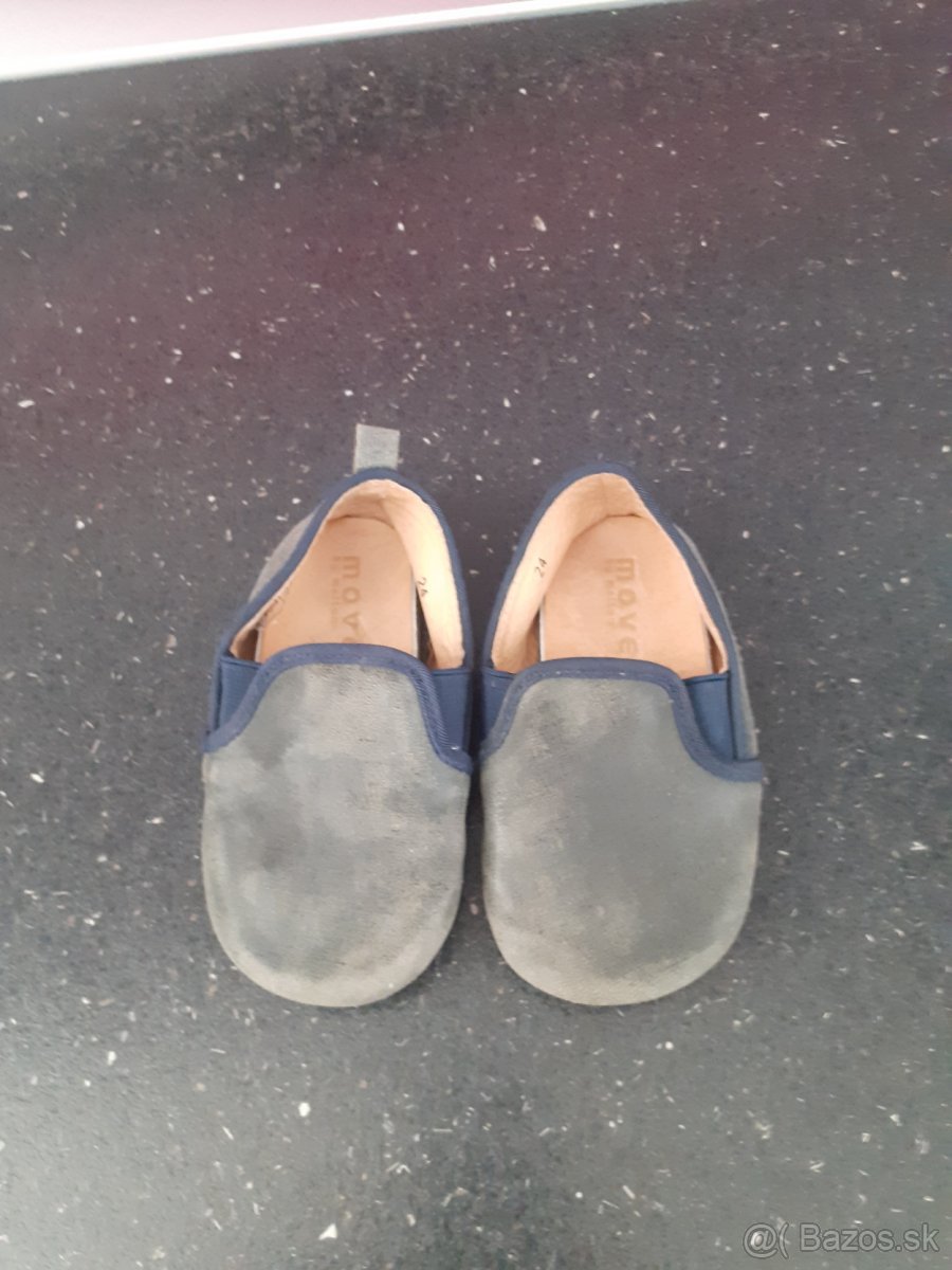Predám kožené papučky zn. MOVE. Unikátny dizajn dánskej značky MOVE by Melton a protišmyková gumená podrážka s výbornou ohybnosťou sú zárukou vysokej pohodlnosti, pričom je chôdza v nich identická s chôdzou na boso a tak zlepšujú pohybovú zdatnosť a napomáhajú zdravému vývinu detských nôh. Papučky MOVE by Melton sú výnimočné okrúhlou a veľmi širokou špicou. Vhodné na nosenie v interiéri aj exteriéri. Vrch topánky je pokrytý kožou. Podšívka je z kože. Topánočky sú vhodné na širšie nôžky. Bežné známky nosenia. Veľkosť 24, vnútorná dĺžka 14,5 cm.