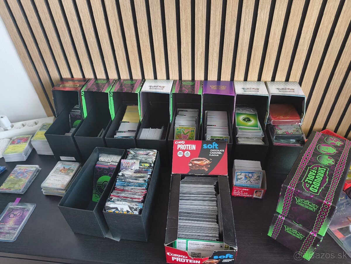 Mám tam sety zo sérií - Scarlet & Violet, Paldea Evolved, Obsidian Flames, Twilight Masquerade, Shrouded Fable - skoro kompletný chýbajú dve karty v základe, Surging Sparks, Prismatic Evolution, Journey Together, Destined Rivals.