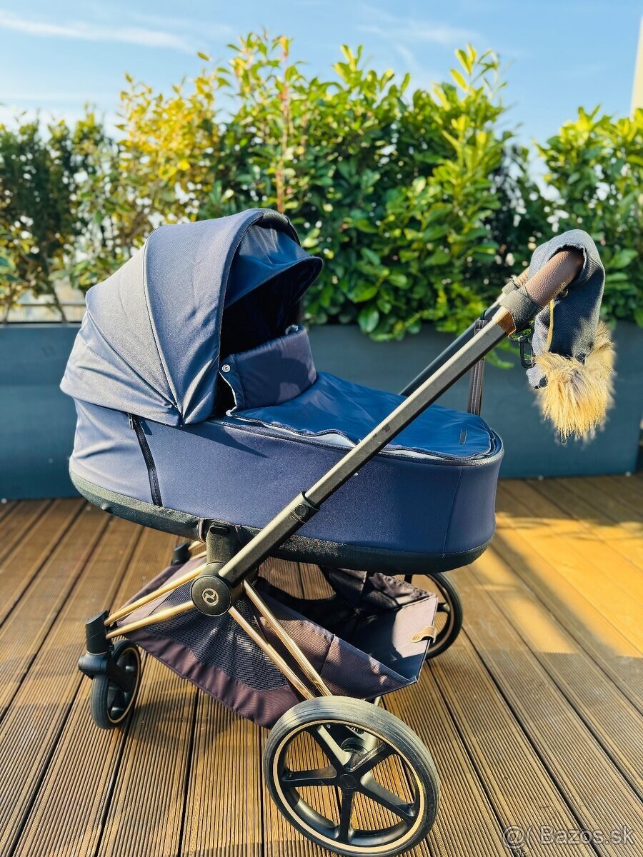 Predám tento krásny kočiar Cybex Priam v nádhernej, kráľovskej modrej, MIDNIGHT BLUE. Vanička - hlboká časť ku kočiariku je dostatočne veľká a priestranná aj pre veľké a aktívne bábätko, s efektivnymi odvetrávacími systémami a mäkkučkou výstelkou. Športová časť je plne polohovateľná s možnosťou úplného ľahu. Otočnosť oba smermi samozrejmosťou. skladanie JEDNOU RUKOU za pár sekúnd.